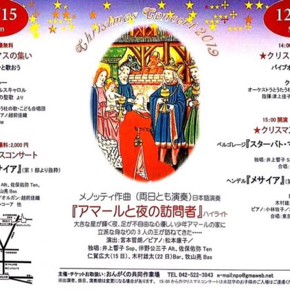 2016-12-22 2016年12月22日 第66回チャリティーコンサート ヘンデル《メサイア》 第66回チャリティーコンサート ヘンデル《メサイア》 日時 2016年12月22日(木)18:30開演 会場 東京文化会館 大ホール Home › 過去に出演した演奏会 › 2016年12月22日 第66回チャリティーコンサート ヘンデル《メサイア》 関連記事 2020年12月29日 歌曲個展シリーズ1 ベートーヴェン歌曲個展 遥かなる恋人に寄す 2023年12月16日 歌曲個展シリーズ+5 ドイツロマン派の歌曲 2025年1月18日 東京混声合唱団 第266回 定期演奏会 2017年9月10日 藝祭2017演奏企画 モンテヴェルディ マドリガーレ集 2019年12月15日 クリスマスコンサート 2016年11月27日 藝大定期 第379回 藝大フィルハーモニー合唱定期演奏会 2016年12月23日 harmonia ensemble 4th Christmas Concert