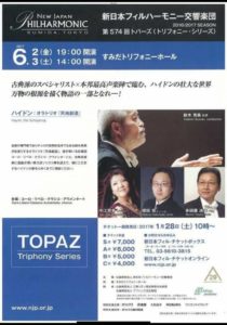2017-06-02 2017年6月2日 ハイドン オラトリオ《天地創造》 新日本フィルハーモニー交響楽団 第574回トパーズ《トリフォニー・シリーズ》 ハイドン オラトリオ《天地創造》 日時 2017年6月2日(金)19:00開演 会場 すみだトリフォニー Home › 過去に出演した演奏会 › 2017年6月2日 ハイドン オラトリオ《天地創造》 関連記事 2018年11月5日 東日本大震災 大船渡復興支援ベネフィットコンサート 昼の部 2024年12月9日 Atelier Jeux 1st Consert 三ッ石潤司個展 2020年11月7日 IL GORILLA 2nd Concert 2025年8月27日 Joe Hisaishi Special Concert 祈りのうた 2025 日本センチュリー交響楽団 音楽監督就任披露演奏会 2024年7月31日 JOE HISAISHI MUSIC FUTURE SPECIAL 2024 2017年5月21日 「日本名曲アルバム」スペシャルコンサート2017 2017年6月4日 藝大第九 ~チャリティーコンサート Vol.1~