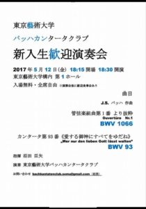 2017-05-12 2017年5月12日 東京藝術大学バッハカンタータクラブ 新入生歓迎演奏会 東京藝術大学バッハカンタータクラブ 新入生歓迎演奏会 日時 2017年5月12日(金)18:30開演 会場 東京藝術大学構内第1ホール Home › 過去に出演した演奏会 › 2017年5月12日 東京藝術大学バッハカンタータクラブ 新入生歓迎演奏会 関連記事 2019年5月6日 第1回コモゴモ展オペラ《ヘンゼルとグレーテル》 2017年5月5日 東日本大震災 音楽復興支援コンサート 第5回 2021年12月24日 オペラのまど主催 第2回公演 2024年10月27日 所沢混声合唱団 第17回定期演奏会 演劇サークル×Opera piena di Vita「THE・BUT」 2017年5月5日 東日本大震災 音楽復興支援コンサート 第5回 2017年5月14日 あい混声合唱団 第8回定期演奏会 終わりのない歌・世界の現在を歌う