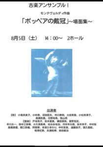 2017-08-05 2017年8月5日 古楽アンサンブルⅠ「ポッペアの戴冠」 古楽アンサンブルⅠ「ポッペアの戴冠」 日時 2017年8月5日(土)14:00開演 会場 東京藝術大学構内 第2ホール Home › 過去に出演した演奏会 › 2017年8月5日 古楽アンサンブルⅠ「ポッペアの戴冠」 関連記事 2024年3月24日 坂口真由 ソプラノ・リサイタル 2024年1月24日 東混ゾリステン アフタヌーン・コンサート Vol.1 2019年4月13日 東京藝術大学音楽学部 同声会新人演奏会 2014年10月12日 芸短フェスタ2014 大分県立芸術文化短期大学 エイトピアおおの特別演奏会 2024年5月4日 團伊玖磨生誕100年記念コンサート 2017年7月14日 声楽演習Ⅲ2017年度前期発表会 ロシア歌曲の夕べ 2017年8月26日 大分県立芸術文化短期大学卒業生によるコンサート