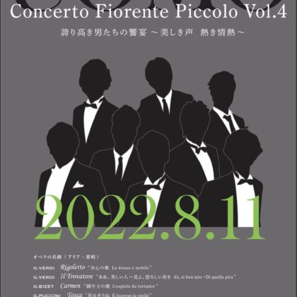 • 2022年8月11日 Concerto Fiorente Piccolo Vol.4 吉田浩之監修 若い芽のコンサート 誇り高き男たちの饗宴 ~美しき声 熱き情熱~