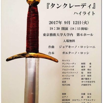 • 2017年9月12日 野間愛 第1回博士リサイタル オペラ《タンクレーディ》ハイライト
