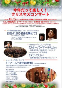 2020-12-05 2020年12月5日 今年だって楽しく!クリスマスコンサート 昼の部 今年だって楽しく!クリスマスコンサート 日時 2020年12月5日(土)13:30開演 会場 たましんRISURUホール 小ホール Home › 過去に出演した演奏会 › 2020年12月5日 今年だって楽しく!クリスマスコンサート 昼の部 関連記事 2013年9月16日 芸短音楽科コンサートシリーズNo.69 若さあふれるコンサート 2025年1月4日 CONCERTINO FIORENTE 20th NEW YEAR CONCERT 演劇サークル×Opera piena di Vita「THE・BUT」 2025年12月21日 第24回 新潟第九コンサート2025 2023年12月2日 東京混声合唱団 No.28大阪定期演奏会 2020年11月7日 IL GORILLA 2nd Concert 2020年12月5日 今年だって楽しく!クリスマスコンサート 夜の部