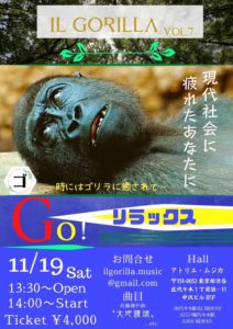 2022-11-19 2022年11月19日 IL GORILLA Vol.7 Go!リラックス IL GORILLA Vol.7 Go!リラックス 現代社会に疲れたあなたに 日時 2022年11月19日(土)14:00開演 会場 アトリエ・ムジカ Home › 過去に出演した演奏会 › 2022年11月19日 IL GORILLA Vol.7 Go!リラックス 関連記事 2017年9月30日 harmonia ensemble 第13回定期演奏会 復刻・アリアンナの嘆き 2017年6月2日 ハイドン オラトリオ《天地創造》 2017年3月12日 心に花を咲かせよう 2023年12月26日 男声アンサンブルによる合唱の夕べⅡ 2024年12月15日 ヤクブ・ヤン・リバ チェコのクリスマスミサ チェコ語公演 2022年11月13日 故ラドミル・エリシュカ記念演奏会 2022年12月14日 株式会社ムジカ・チェレステ主催 オペラ「ラ・ボエーム」