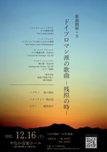 2023-12-16 2023年12月16日 歌曲個展シリーズ+5 ドイツロマン派の歌曲 歌曲個展シリーズ+5 ドイツロマン派の歌曲 -残照の時- 日時 2023年12月16日(土)15:00開演 会場 やなか音楽ホール Home › 過去に出演した演奏会 › 2023年12月16日 歌曲個展シリーズ+5 ドイツロマン派の歌曲 関連記事 2021年3月22日 歌曲個展シリーズ2 ショスタコーヴィチ歌曲個展 第1回 2024年11月4日 「清流の国ぎふ」文化祭2024 愛と平和を歌う合唱フェスティバル 2025年7月16日 STUDIO GHIBLI FILM CONCERT TOUR FINAL AT TOKYO DOME 2013年9月16日 芸短音楽科コンサートシリーズNo.69 若さあふれるコンサート 2017年5月14日 あい混声合唱団 第8回定期演奏会 終わりのない歌・世界の現在を歌う 2023年12月15日 東京混声合唱団 第263回定期演奏会 2023年12月17日 ヤクブ・ヤン・リバ チェコのクリスマスミサ 日本語公演