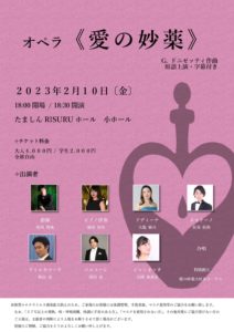 2023-02-10 2023年2月10日 オペラ《愛の妙薬》 オペラ《愛の妙薬》 日時 2023年2月10日(金)18:30開演 会場 たましんRISURUホール 小ホール Home › 過去に出演した演奏会 › 2023年2月10日 オペラ《愛の妙薬》 関連記事 2023年1月22日 Deutsche Oper U 第1回公演 モーツァルト作曲 歌劇「魔笛」 2016年11月21日 harmonia ensemble 第1回国際合唱フェスティバル 2024年12月28日 大中恩 生誕100年記念演奏会 2025年12月7日 東京混声合唱団 住友生命いずみホール定期演奏会 2015年8月16日 harmonia ensemble 第6回定期演奏会 2023年1月22日 Deutsche Oper U 第1回公演 モーツァルト作曲 歌劇「魔笛」 2023年2月26日 ドン・パスクワーレ