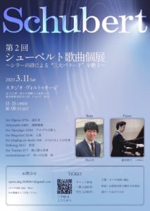 2023-03-11 2023年3月11日 歌曲個展シリーズ7 シューベルト歌曲個展 第2回 歌曲個展シリーズ7 シューベルト歌曲個展 第2回 ~シラーの詩による“三大バラード”を歌う~ 日時 2023年3月11日(土)16:00開演 会場 スタジオ・ヴィルトゥオージ Home › 過去に出演した演奏会 › 2023年3月11日 歌曲個展シリーズ7 シューベルト歌曲個展 第2回 関連記事 2017年7月14日 声楽演習Ⅲ2017年度前期発表会 ロシア歌曲の夕べ 2021年8月13日 Concerto Fiorente Piccolo Vol.3 2016年11月27日 藝大定期 第379回 藝大フィルハーモニー合唱定期演奏会 2024年8月31日 東京混声合唱団特別演奏会 東混オールスターズ 2021年8月2日 Le théâtre sucré DON GIOVANNI 2023年2月28日 六本木男声合唱団ZIG-ZAG 三枝成彰80歳 渾身の最新作「愛の手紙~恋文」 2023年4月22日 IL GORILLA Vol.8 そこに、愛はあるんか?