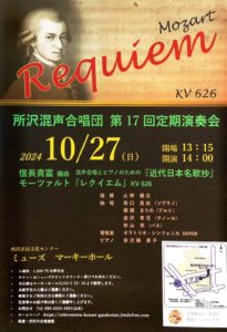 2024-10-27 2024年10月27日 所沢混声合唱団 第17回定期演奏会 所沢混声合唱団 第17回定期演奏会 日時 2024年10月27日(日)14:00開演 会場 所沢市民文化センター ミューズ マーキーホール Home › 過去に出演した演奏会 › 2024年10月27日 所沢混声合唱団 第17回定期演奏会 関連記事 2017年10月8日 第63回 藝大オペラ定期公演 フィガロの結婚 2015年6月21日 ハルモニア・アンサンブル Nコンをうたう 2025年6月20日 東混ゾリステン アフタヌーン・コンサート 2017年9月12日 野間愛 第1回博士リサイタル オペラ《タンクレーディ》ハイライト 2024年1月24日 東混ゾリステン アフタヌーン・コンサート Vol.1 2024年10月1日~21日 東京混声合唱団 ヨーロッパ公演 2024年10月31日 東京混声合唱団 第265回 定期演奏会
