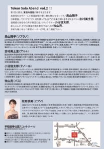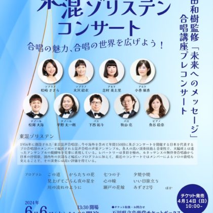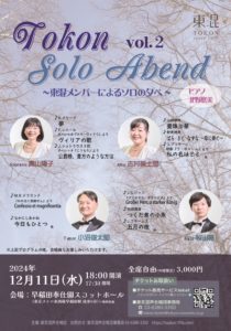 2024-12-11 2024年12月11日 東混ソロ・アーベント Vol.2 東混ソロ・アーベント Vol.2 日時 2024年12月11日(水)18:00開演 会場 早稲田奉仕園スコットホール Home › 過去に出演した演奏会 › 2024年12月11日 東混ソロ・アーベント Vol.2 関連記事 2018年11月5日 東日本大震災 大船渡復興支援ベネフィットコンサート 昼の部 2017年2月19日 東京藝術大学バッハカンタータクラブ 2017年定期演奏会 2016年11月27日 藝大定期 第379回 藝大フィルハーモニー合唱定期演奏会 2023年11月25日 濱田芳通&アントネッロ「メサイア」 2024年6月6日 山田和樹監修「未来へのメッセージ」東混ゾリステンコンサート 2024年12月9日 Atelier Jeux 1st Consert 三ッ石潤司個展 2024年12月15日 ヤクブ・ヤン・リバ チェコのクリスマスミサ 日本語公演