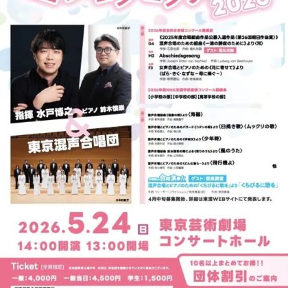 2025-12-24 2025年12月24日 歌曲個展シリーズ11 ショスタコーヴィチ歌曲個展 第3回 -没後50年に寄せて- 歌曲個展シリーズ11 ショスタコーヴィチ歌曲個展 第3回 -没後50年に寄せて- 日時 2025年12月24日(水)18:15開演 会場 大泉学園ゆめりあホール Home › 過去に出演した演奏会 › 2025年12月24日 歌曲個展シリーズ11 ショスタコーヴィチ歌曲個展 第3回 -没後50年に寄せて- 関連記事 2024年5月4日 團伊玖磨生誕100年記念コンサート 2017年3月12日 心に花を咲かせよう 2022年11月6日 エクス・ノーヴォVol.16 古楽アンサンブル エクス・ノーヴォ シアターX提携公演 14時00分の部 2018年10月28日 無垢の予兆 八村義夫 生誕80年祭 2016年12月23日 harmonia ensemble 4th Christmas Concert 2025年12月21日 第24回 新潟第九コンサート2025 2025年12月26日 Phidias Trio vol.13 “Re-invent”