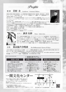 2025-12-14 2025年12月14日 合唱で紡ぐ青春の名曲 ~東京混声合唱団を迎えて~ 合唱で紡ぐ青春の名曲 ~東京混声合唱団を迎えて~ 日時 2025年12月14日(日)15:00開演 会場 一関文化センター大ホール Home › 過去に出演した演奏会 › 2025年12月14日 合唱で紡ぐ青春の名曲 ~東京混声合唱団を迎えて~ 関連記事 2016年5月28日 新日本フィル 第559回定期演奏会 2023年8月19日 夏の第九 2017年10月31日 三枝成彰:新作オペラブッファ 「狂おしき真夏の一日」 2023年11月16日 愛知室内オーケストラ 第65回定期演奏会 2025年5月4日 ラ・フォル・ジュルネTOKYO2025 「ウィーンを席巻した作曲家が聴かせる豪壮なる破天荒」 2025年12月13日 東混ゾリステン出張ミニコンサート ~あなたの町へ ㏌藤沢町~ 2025年12月19日 東京佼成ウインドオーケストラ「第九」