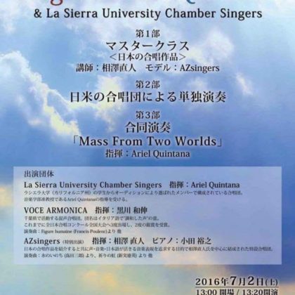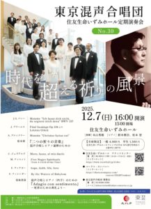 2025-12-07 2025年12月7日 東京混声合唱団 住友生命いずみホール定期演奏会 東京混声合唱団 住友生命いずみホール定期演奏会 日時 2025年12月7日(日)16:00開演 会場 住友生命いずみホール Home › 過去に出演した演奏会 › 2025年12月7日 東京混声合唱団 住友生命いずみホール定期演奏会 関連記事 2017年8月26日 大分県立芸術文化短期大学卒業生によるコンサート 2025年2月16日 歌曲個展シリーズ11 シューベルト歌曲個展vol.3 冬の旅 2023年7月27日 シバムジーク コンサートシリーズVol.6 男声アンサンブルによる合唱曲のゆうべ 2016年7月2日 Sing with Ariel Quintana 2022年3月6日 Orchestra Musicart Project2.0+ 2025年12月3日 オーケストラ・プロジェクト2025 ~芥川也寸志、ベリオ、ブーレーズ生誕100年の年に~ 2025年12月13日 東混ゾリステン出張ミニコンサート ~あなたの町へ ㏌藤沢町~