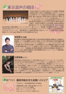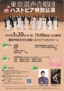 2025-03-20 2025年3月20日 東京混声合唱団ハストピア特別公演 東京混声合唱団ハストピア特別公演 日時 2025年3月20日(木・祝)15:00開演 会場 蓮田市総合文化会館ハストピア どきどきホール Home › 過去に出演した演奏会 › 2025年3月20日 東京混声合唱団ハストピア特別公演 関連記事 2019日2月10日 第5回 Opera Piena di Vita OB演奏会 2015年6月28日 幕張総合高校18期音楽系コース卒業生による フレッシュコンサート 2023年9月5日 VOT主催 桃太郎&ジャンニ・スキッキ 2016年11月21日 harmonia ensemble 第1回国際合唱フェスティバル 2017年1月13日 大分県立芸術文化短期大学卒業生による フレッシュコンサート 2025年3月11日 第11回 被災地復興支援 チャリティ・コンサート 2025年3月31日 子供たちに残したい 美しい日本のうた
