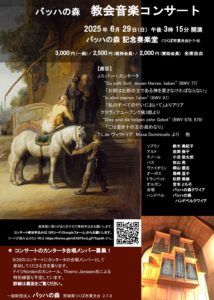 2025-06-29 2025年6月29日 バッハの森 教会音楽コンサート バッハの森 教会音楽コンサート 日時 2025年6月29日(日)15:15開演 会場 バッハの森 記念奏楽堂 Home › 過去に出演した演奏会 › 2025年6月29日 バッハの森 教会音楽コンサート 関連記事 2024年2月17日 東京混声合唱団 名古屋公演「祈り」 2024年5月11日 歌曲個展シリーズ10 ヴォルフ歌曲個展 第1回 第2部 2017年11月3日 フレスコバルディへのオマージュ 2017年3月21日 牧山亮 バリトンリサイタル 2024年10月1日~21日 東京混声合唱団 ヨーロッパ公演 2025年6月20日 東混ゾリステン アフタヌーン・コンサート 2025年7月6日 東京混声合唱団と共につくるコンサートinヒロシマ