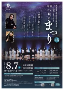 2025-08-07 2025年8月7日 東京混声合唱団特別演奏会 林光メモリアル 八月のまつり46 東京混声合唱団特別演奏会 林光メモリアル 八月のまつり46 日時 2025年8月7日(木)19:00開演 会場 第一生命ホール(晴海トリトンスクエア内) Home › 過去に出演した演奏会 › 2025年8月7日 東京混声合唱団特別演奏会 林光メモリアル 八月のまつり46 関連記事 2024年7月31日 JOE HISAISHI MUSIC FUTURE SPECIAL 2024 2023年11月18日 東京混声合唱団 IN CHOFU 2017年10月7日 第63回 藝大オペラ定期公演 フィガロの結婚 2017年8月26日 大分県立芸術文化短期大学卒業生によるコンサート 2022年12月17日 第7回 チェコのクリスマスミサ 2025年7月26日 真夏の第九 2025年8月15日 邦楽創造集団オーラJ 第42回定期演奏会