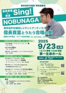 2025-09-23 2025年9月23日 東京混声合唱団 特別演奏会 信長貴富+東混 Sing!NOBUNAGA 東京混声合唱団 特別演奏会 信長貴富+東混 Sing!NOBUNAGA 日時 2025年9月23日(火・祝)14:00開演 会場 第一生命ホール Home › 過去に出演した演奏会 › 2025年9月23日 東京混声合唱団 特別演奏会 信長貴富+東混 Sing!NOBUNAGA 関連記事 2015年6月28日 幕張総合高校18期音楽系コース卒業生による フレッシュコンサート 2015年10月18日 バッハカンタータクラブ音楽讃美夕礼拝 2022年8月7日 真夏のaromatic コンサートVol.5 2016年12月22日 第66回チャリティーコンサート ヘンデル《メサイア》 2025年4月30日 都響 第1020回定期演奏会Aシリーズ 2025年9月20日 どう?来ん? 哀歌 2025年10月9日 Meet up with TOKON Vol.2