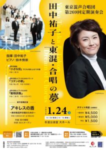 2025-11-13 2026年1月24日 東京混声合唱団 第269回 定期演奏会 「田中祐子と東混・合唱の夢」 東京混声合唱団 第269回 定期演奏会 「田中祐子と東混・合唱の夢」 日時 2026年1月24日(土)15:00開演 会場 杉並公会堂 大ホール Home › 演奏会 › 2026年1月24日 東京混声合唱団 第269回 定期演奏会 「田中祐子と東混・合唱の夢」 関連記事 2026年2月15日 東混ゾリステン南会津公演 2026年1月17日 歌うまちふじえだコンサート 2026年2月5日 池辺晋一郎大全集Vol.8 池辺晋一郎の合唱Ⅱ 2026年3月28日 濱田芳通&アントネッロ 第21回 定期公演 モーツァルト《レクイエム》 2026年4月18日 合唱団ABQ 第1回定期演奏会 2026年5月10日 山田和樹&東京芸術劇場 交響都市計画 《交響的変容》 2026年2月15日 東混ゾリステン南会津公演