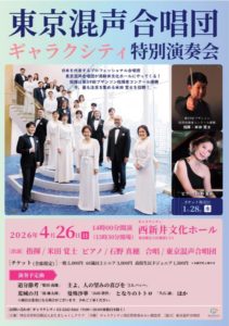 2026-01-24 2026年4月26日 東京混声合唱団ギャラクシティ特別演奏会 東京混声合唱団ギャラクシティ特別演奏会 日時 2026年4月26日(日)14:00開演 会場 ギャラクシティ西新井文化ホール Home › 演奏会 › 2026年4月26日 東京混声合唱団ギャラクシティ特別演奏会 関連記事 2026年2月15日 東混ゾリステン南会津公演 2026年3月28日 濱田芳通&アントネッロ 第21回 定期公演 モーツァルト《レクイエム》 2026年2月5日 池辺晋一郎大全集Vol.8 池辺晋一郎の合唱Ⅱ 2026年4月18日 合唱団ABQ 第1回定期演奏会 2026年5月10日 山田和樹&東京芸術劇場 交響都市計画 《交響的変容》 2026年3月2日 アンサンブル・クノスペン「歌の饗宴」