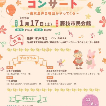 歌うまちふじえだコンサート 日時 2026年1月17日(土)15:...