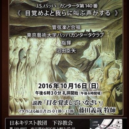 バッハカンタータクラブ 音楽讃美夕礼拝 日時 2016年10月16...
